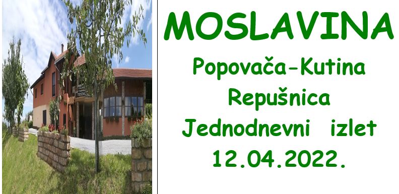 Utorak, 12. 4. 2022.: Polazak iz Zagreba u 10 sati . Dolazak u Popovaču na imanje obitelji Trdenić na degustaciju vina. Nakon razgleda odlazak u Kutinu te razgled Muzeja Moslavine. Nastavak puta prema Repušnici gdje nas čeka ručak i zabavni Pročitaj više …